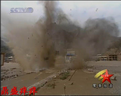 Water had begun to build up dangerously behind the landslide dam and the blasts have allowed some water to drain away safely easing the pressure.