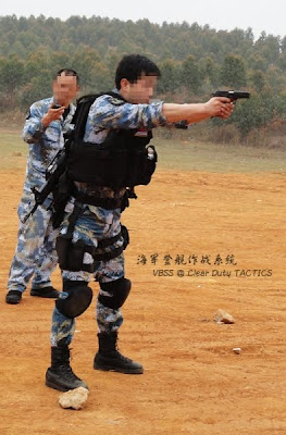 Judging by the photos of PLAN's 9th Task Force to the Gulf and Aden, it seems the PLAN SpOps team has adopted Clear Duty's VBSS body armor.    Also noted from the photo of a fore-gripped Type95, the PLAN is allowing its elites a greater leverage in customizing their gear.