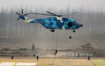 The 1st Heli-Assault Brigade (or 直升机机降突击旅 in Chinese) started as the 1st Heli-Assault battalion battle group in 2005, expanded into a full assault brigade in 2008. According to its commander 厉振彪 Li ZhenBiao, due to shortage of organic vertical assets, flatbed trucks were pressed into service to simulate airdrops. Their first military exercise was feasible only by 2009 when additional helicopters found their way to the Nanjing MR. Despite taking part at this year's Zhurihe, the outfit is still fairly new by PLA standards, doubts about their effectiveness will remain for some time to come.
